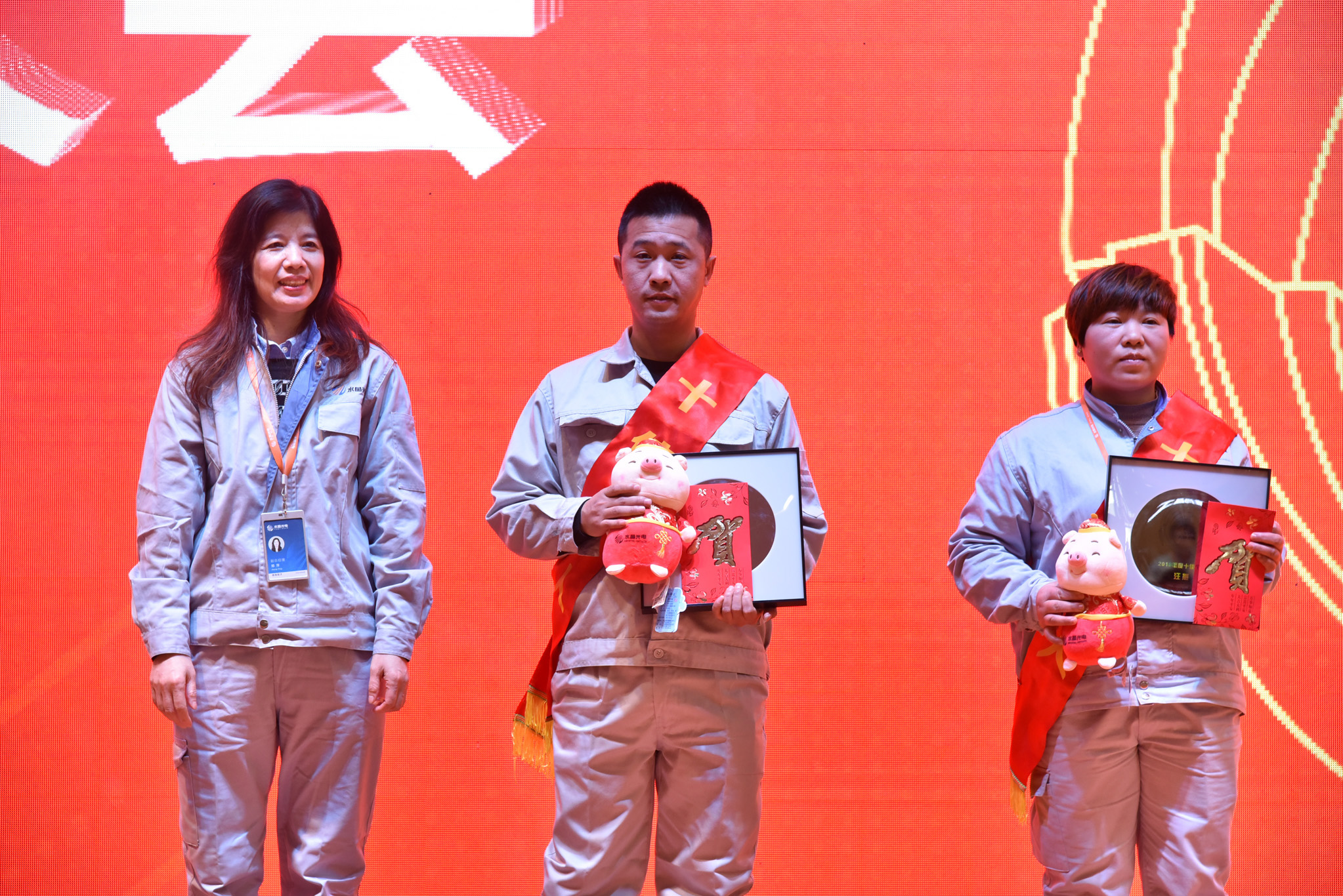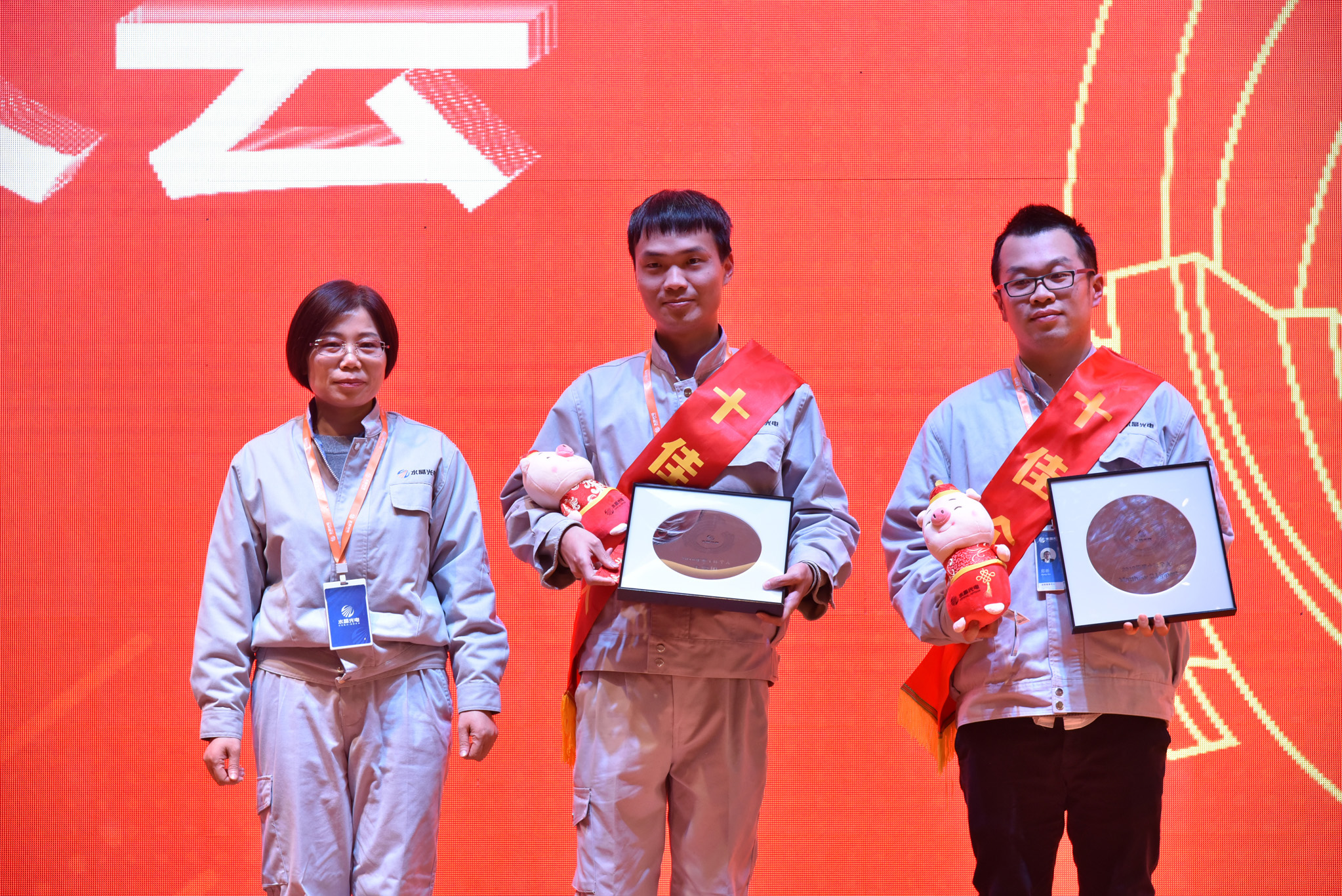 接著,公司對從優(yōu)秀員工提名名單中,評選出的10名在2018年度有突出業(yè)績的十佳員工進行了表彰,并為他們頒發(fā)了獎牌、獎金和吉祥物。