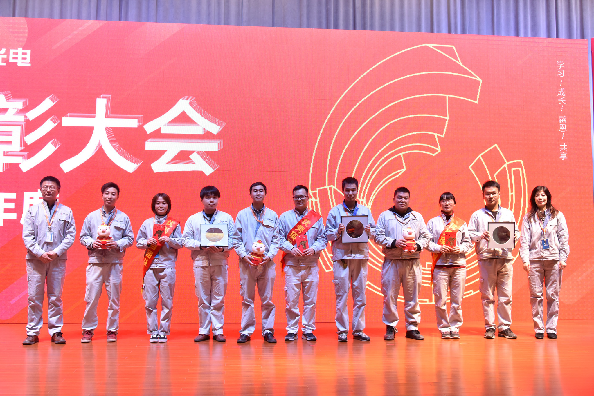 這一年,公司也涌現(xiàn)出了許多優(yōu)秀的員工和團隊,他們愛崗敬業(yè)、技能精湛、勤精誠樸、攻堅克難,在平凡的崗位上做出了不平凡的成績。會上,公司對獲得明日之星、優(yōu)秀輔導(dǎo)員、操作能手、班組骨干、技術(shù)尖兵、服務(wù)楷模、銷售明星、管理精英9個單項獎的48名優(yōu)秀員工進行表彰,并為他們頒發(fā)了獎牌、獎金和吉祥物。